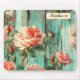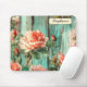 Liven up your desk with this fun personalized mouse pad! It features vibrant pink and coral roses with realistic texture set against a distressed turquoise wooden background. The shabby-chic, rustic look brings rich, nostalgic color to your workspace. Add your name or message for a custom touch.