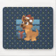 A mouse with illustration of cute German Shepherd with a present on a starry night dark blue background, illustrated by Radka2D