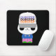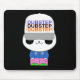 Un lindo mousepad con un panda kawaii usando un sombrero camionero de dos pasos y un traje hipster en un fondo negro.