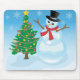 Un muñeco de nieve con copos de nieve y un árbol de Navidad adornado es tan festivo para las vacaciones.