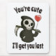 Gracioso y encantador Grim Reaper con un romántico globo de corazón dice "Eres lindo, te daré el último". Ideal tanto para Día de San Valentín como para Halloween. Para niños y adultos.
