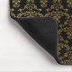 Patrón de damasco de oro muy detallado sobre un fondo negro.