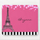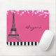 Alfombrilla de ratón de chicas caniche rosa de la Torre Eiffel de París. Agregar texto o dejar en blanco.