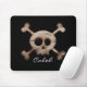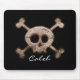 Alfombrilla de ratón de computadora negra con cráneo y huesos angustiados. Agregar texto o dejar en blanco.