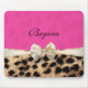Alfombrilla de ratón de impresión de leopardo y gamo rosa con lazo. Personalice con texto o déjelo en blanco.