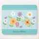Agrega un toque especial a tu espacio de trabajo y protege tu escritorio de rasguños con esta hermosa alfombrilla de ratón que presenta flores coloridas, pájaros lindos, lunares, un borde escalopado de moda y un monograma personalizable. Este diseño es simple y minimalista, por lo que atraerá a personas de todas las edades. Personaliza el texto para que se adapte a tus necesidades.