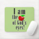 Soy la manzana de los ojos de dios almohadilla de ratón con ilustracion de manzana roja y texto. Decoración cristiana y cita la almohadilla del ratón