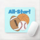 ¡Nuestro All Star se divierte el texto azul de las características del mousepad que lee "All-star! ¡", un fútbol, un béisbol, y un baloncesto en un fondo azul claro!