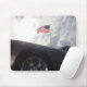 Imagen genial de un desafiador de 2009 Dodge y una bandera americana en un mouspad.