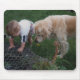 Un niño y un golden retriever persiguen la mirada atento abajo de un agujero.