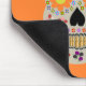Este impresionante mousepad presenta una imagen de diseño gráfico de un cráneo inspirado en el Día de los Muertos de México. El cráneo es de color gris pálido y lleva un sombrero amarillo. Tiene dientes de oro y girasoles mexicanos, también llamados Tithonias< en lugar de ojos. El sombrero tiene un cactus encima y está cubierto por motivos de remolinos de bonito y pimientos de chile rojos y verdes. El cráneo está cubierto de flores de color bonito de diferentes tipos.