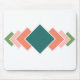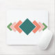 Esta almohadilla del ratón tiene un diseño Bauhaus de siete diamantes superpuestos que recorren verticalmente el objeto en colores retro de azul, rosa y verde.