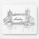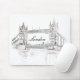 Almohadilla para el ratón con una pluma y un ilustracion de tinta del puente de la Torre de Londres. Este clásico y sofisticado dibujo en blanco y negro es el regalo perfecto para su anglófilo favorito.
