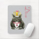 Cute almohadilla de ratón hecha en gris con acuarela de un gatito dormido de esmoquin negro y blanco usando una corona y lujoso collar. El texto rosa del gran personalizado dice Diva, y se puede personalizar para leer lo que se quiere. Excelente para casa u oficina.