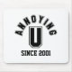 ¿Tienes un doctorado en Ser Dolor en la Influencia? Si es así, este gracioso Mousepad de "Annoying U" en negro es perfecto para usar alrededor de hermanos o a cualquier otra persona a la que te guste molestar. Con una sensación de memorabilidad universitaria, este humorístico diseño tipográfico sería un gran regalo para ti mismo o para cualquier cantidad de gente fastidiosa que puedas conocer. Fácil de personalizar, añada el año en que nació u otro texto personalizado de su elección. Haga clic en el botón "Personalizar" para encontrar opciones de personalización adicionales.