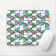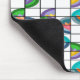 Esta almohadilla del ratón tiene un diseño Boho de flores dentro de ovales que han sido divididas en cuartos y colocadas en una cuadrícula.