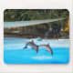 Dos delfines lanzando a su entrenador al aire, España, por Helen A. Lisher.