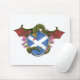 Un dragón escocés envuelto alrededor de un Escudo de la bandera escocesa.