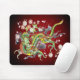 Dragón verde entre las flores en un fondo rojo y negro de la pendiente del color.
