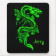 Cojín de ratón negro hermoso con un dragón verde claro de mirada fresco del estilo chino. Personalice el nombre en texto verde cualquier cosa que usted quiere. Hace un gran regalo para cualquier persona en fantasía y dragones. Viene en un dragón azul también, el vínculo abajo.