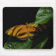Fotografía de una mariposa con un Naranja en bandas buscando refugio en hojas de plantas.