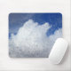 Una almohadilla de ratón con una foto de gotitas de lluvia en una ventana izquierda después de una ducha de lluvia de abril con una suave nube cumulonimbus en el fondo.