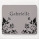 Mousepad floral de mariposa dulce y delgado con un fondo gris turbio y mariposas ébano y adornos de viñas florales. Esta elegante alfombra de ratón floral es una encantadora elección para añadir un poco de chispa a su espacio de trabajo. Fácil de personalizar, simplemente agregue el texto personalizado de su elección en los campos de texto proporcionados. Haga clic en el botón "Personalizar" para encontrar opciones de personalización adicionales.