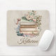 Elegant Boho Book Stack Floral Name Mouse Pad