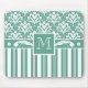 Alfombrilla De Ratón Elegante Damasco Verde del Mar con tu Monograma
