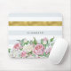 Alfombrilla De Ratón Elegante FAUX Gold Stripe con rosas rosadas y nomb