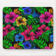 Alfombrilla De Ratón Elegante Flor Hibiscus Tropical Rosa Rojo Azul