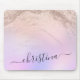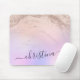 Magnífico diseño personalizado de almohadillas de ratón con mármol purpurina de oro rosa de cobre falso, textura púrpura pastel y elegante fuente caligráfica. Personalice el producto con su nombre o cualquier otro texto.