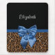 Alfombrilla De Ratón Elegante Leopard Print Elegant Blue Bow and Name