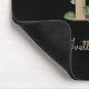 La elegante almohadilla negra del ratón presenta un monograma botánico dorado en el centro.