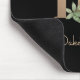 La elegante almohadilla negra del ratón presenta un monograma botánico dorado en el centro.