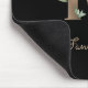 La elegante almohadilla negra del ratón presenta un monograma botánico dorado en el centro.