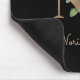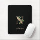 La elegante almohadilla negra del ratón presenta un monograma botánico dorado en el centro.