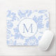Elegante almohadilla de ratón botánico floral monograma azul.