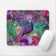 Elegante pavo real violeta vintage y flores en el verde azulado mousepad.
