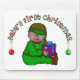 Un bebé afroamericano vestido con un traje verde y una gorra de reposición a rayas en camisetas de personalizable, bolsas de té y otros artículos de vacaciones. El texto a rayas de la caña de caramelo dice "¡Primera Navidad del bebé"!