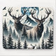 Alfombrilla De Ratón Elk en un bosque místico bajo una montaña iluminad