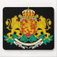 Escudo de Bulgaria. El escudo de armas de Bulgaria consiste en un coronado león dorado desenfrenado sobre un oscuro escudo rojo; encima del escudo está la corona histórica búlgara. El escudo está apoyado por dos leones dorados coronados desenfrenados; debajo del escudo hay un compartimento en forma de ramas de roble y bandas blancas con el lema nacional "Unidad les da poder" inscrito en ellos.
