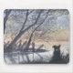El perro del border collie se sienta al lado del lago que empapa para arriba la paz.