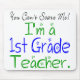 Con orgullo promociona tu actitud docente cuando vuelves a la escuela este año. ¡Una idea de super regalo para dar las gracias a un profesor también! El diseño presenta el sentimiento: "¡No puedes asustarme! Soy profesora de primer grado".