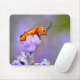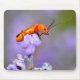 Macroescarabajo de soldado rojo común (Rhagonycha fulva) sobre flor azul