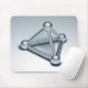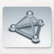 Un tabique con un CGI 3d representó imágenes de una estructura piramidal metálica reflectante de tres lados, de esferas entrelazadas.