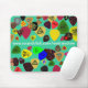 Un mousepad colorido adornado con las púas de guitarra