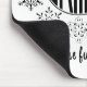 Esquiar mezclado con muchos copos de nieve. Un tatuaje hecho de negro. La palabra esquí está en un círculo ovalado negro con muchos copos de nieve alrededor de la palabra esquí. Las palabras "Por diversión" se imprimen en la parte inferior del tatuaje. Esta almohadilla del ratón es una gran adición a su ordenador personal o de oficina. Una gran manera de mostrar tu amor por el esquí.