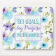 Establecer objetivos dice que las oraciones trabajan duro acuarela Floral Mouse Pad. Este diseño presenta hermosas flores de acuarela giratoria con la cita motivacional Establecer objetivos para que las oraciones trabajen duro. Personalice este diseño personalizado con su propio nombre, texto o presupuesto.
