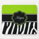Muestre apagado su estilo personal en una manera de la diversión con este cojín de ratón de la verde lima y del estampado de zebra.